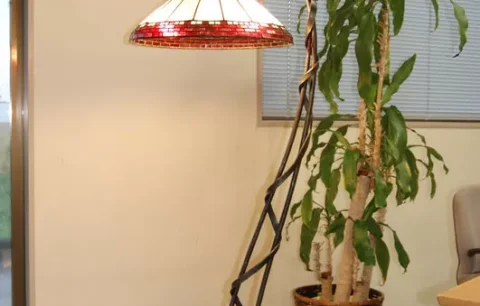 読売新聞をご覧になった、久保田さんという方からガラスを譲っていただけるということで、ご自宅まで訪問しました。本当にこたえるような暑い日でしたが、ガラスの話で2時間ぐらい盛り上がっていました。久保田さんの作品をたくさん見せていただいたのですが、さすが20年以上のキャリアがあり、色々な取り組みをされてきたこと、美しいガラスを使っていらっしゃること、脱帽です。中でもティファニースタイルランプの水仙は久保田さんの一押しの作品とのこと、半田の線の細くて均一で美しいこと、ガラス選びが落ち着いていて、調和がとれていること。秀逸な作品でした。スタンドも良いものを使われていて、素敵でした。1500ピースという数のガラスを切って半田付けの作業は、気の遠くなるような時間が必要です。高崎の町にポピュラークラフトというお教室があり、そこで、レッスンを受けていたそうです。