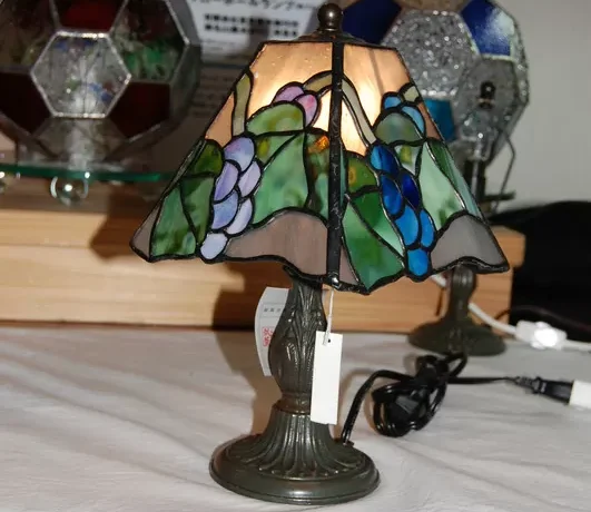 機能性を備えながら遊び心のあるデザインであれば最高です。葡萄のランプもお客様のお手元でいつまでも大事にしていただけるようお祈りしています。因みに、葉っぱは、オセアナ、バックの白はアメリカのヤカゲニー社、葡萄のガラスはウロボロス社のものです。自然の質感に近づけるため葉っぱに当たる光や虫食いなどもガラスで表現しています。