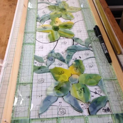 2013年8月26日(月)から8月29日まで 銀座の歌舞伎座の交差点の反対側にあるビルの2階のぐんまちゃん家で 藍染の関 礼子さん(関工房)と ステンドグラス(榛名山麓あかり工房里見)の私、清水初江の二人で作品展を開催します。