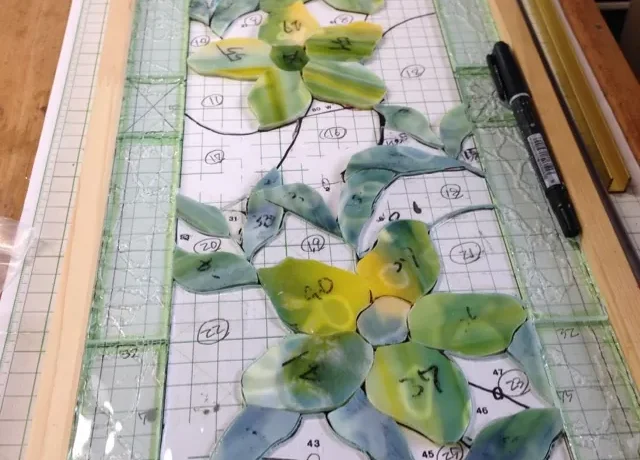 ウロボロスのガラスとウオーターのガラスと型板ガラスで作り始めました。