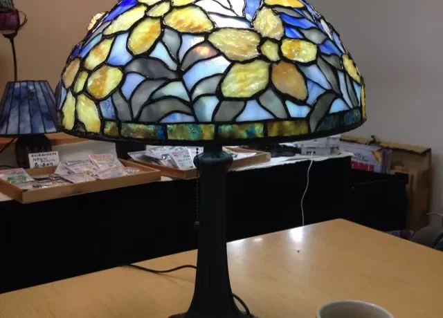 都会的なブルーとシックな黄色のランプです。仕上げのパティーナをして、半田線を黒くしたら、全体が引き締まり素敵なランプとなりました。