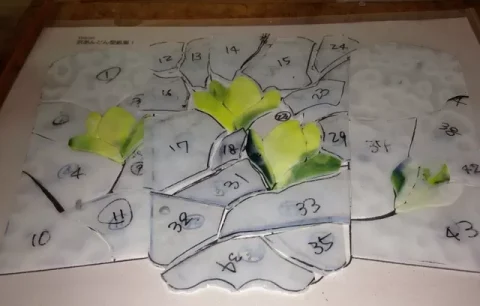 このランプは、3回リピートでパターンを繰り返し使って作るので、3面の表情が楽しめます。