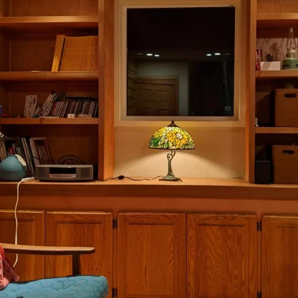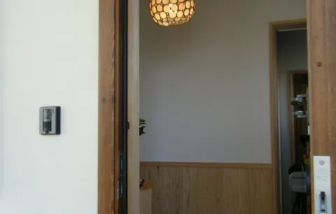 この作品は、平成23年度に入選した半円形壁掛け灯のバージョンアップ版です。シンプルなラインがお客様に好評です。皆さん玄関ホールに設置される方が多いです。