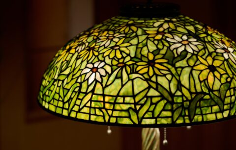 春に咲く球根植物、クロッカス。お花が上下逆さまに表現されています。私が初めてつくったティファニーランプです。